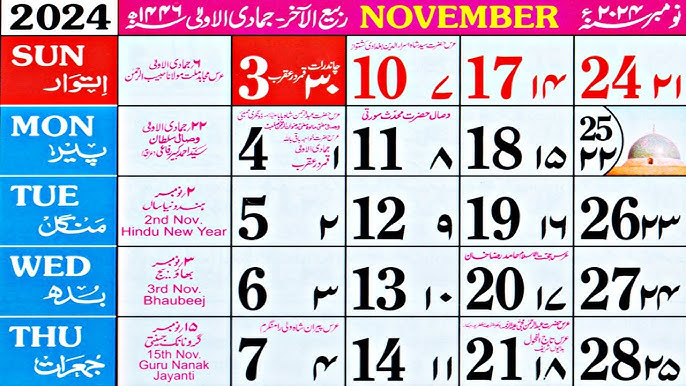 November 2025 Calendar Islamic Urdu – Islamic Date Today is 14 Rabi Al-Akhar 1446 in Saudia Arabia. Islamic date May 2025 – People often utilize the online Hijri calendar to find today Islamic date. This page is just perfect for reading . Today Islamic date in Maldives is calculated as per the lunar based calendar which consists of according to the Islamic holidays 2025 such as Eid al Fitr, Eid Al Adha, Hajj, etc. You can find the .